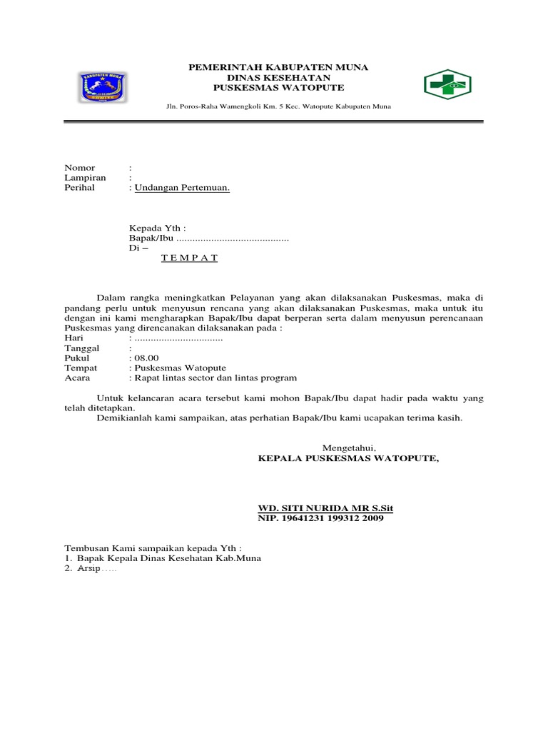 Contoh Surat Undangan Rapat Dinas Kesehatan Sample Surat Undangan